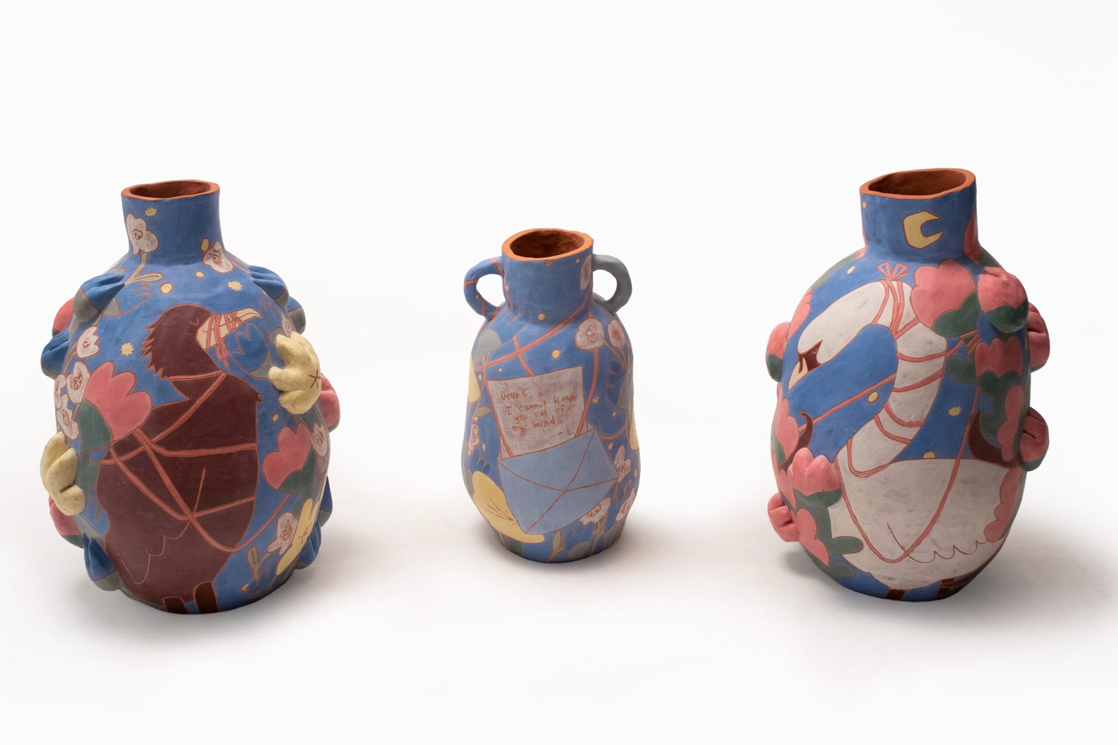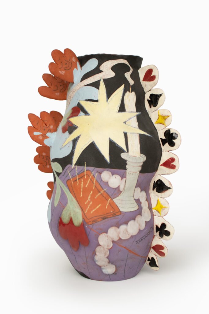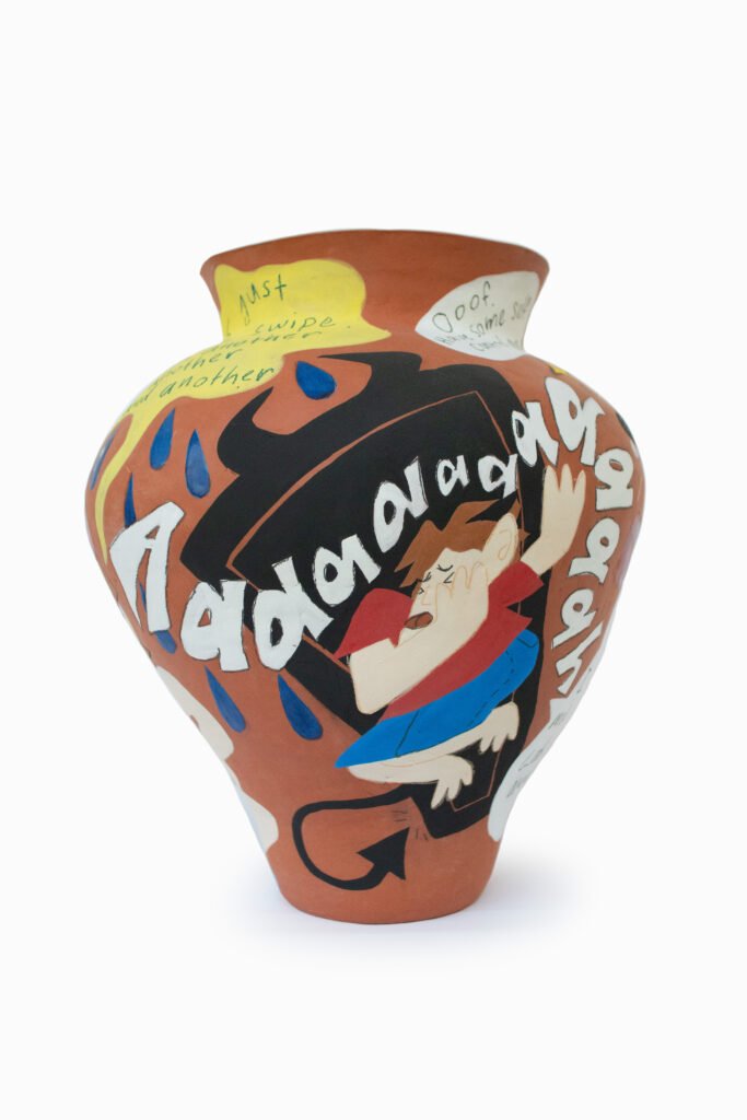 “Cool Ass Dog Pic” 2025 Earthenware, underglaze, glaze, luster.